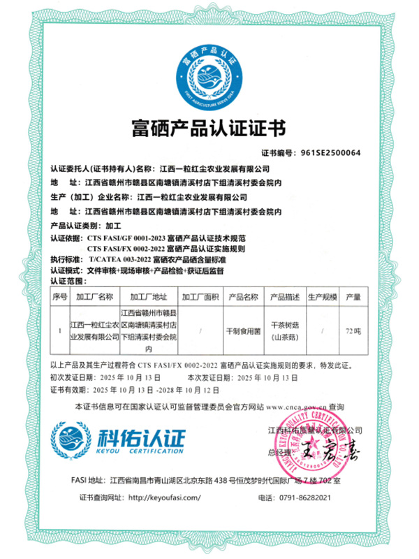 江西一粒紅塵農業發展有限公司是一家總部位于江西省贛縣的現代農業多元型企業,專注于食用菌的研發種植深加工、貿易、研教培、農文旅等全產業鏈發展。公司秉承“健康、綠色共享共贏”的核心價值觀,致力于引領鄉村振興之路,旨在成為......